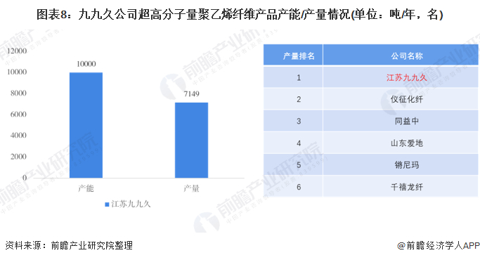 原标题:干货!2022年中国超高分子量聚乙烯纤维行业龙头企业分析——江苏九九久:超高分子量聚乙烯纤维产能位居全国第一 来源:前瞻产业研究院
