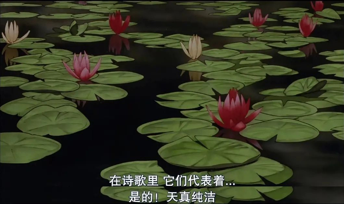今敏也给出了他的答案,影片反复出现的莲花的意象已由千代子道出:对所怀的希望保持着天真纯净的内心。千代子后来成为了东京的麦当娜,可她最初离开母亲的动机去演戏的动机却仅仅是单纯想要找寻那位画家。画家本人在千代子的心中逐渐被抽象成了一个符号化的希望般的存在——她渐渐忘却了他长什么样,只记得永远要一直去追寻他。也因为这样的追逐,使得千代子永远年轻。