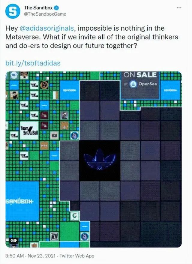 阿迪达斯方面也在积极深入,不仅旗下品牌adidas Originals进军元宇宙并发行POAP NFT,近日还与加密货币交易所Coinbase、元宇宙游戏平台The Sandbox达成合作,建立元宇宙品牌。