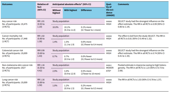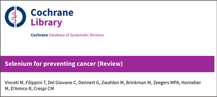 参考文献:Selenium for preventing cancer. CochraneDatabase Syst Rev. 2018 Jan 29;1(1):CD005195.