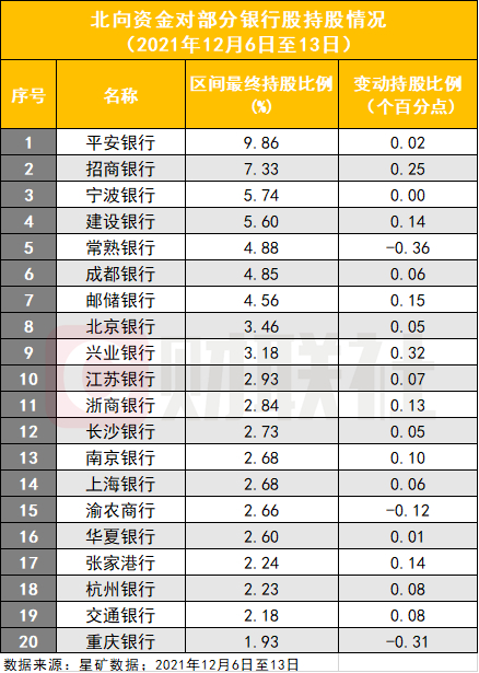 银行板块在上周度获北向资金增持,截至上周末净买入额达到80.63亿元。不过该势头未能在本周延续,据WIND显示,12月13日,银行板块遭遇2.4亿元的净卖出。