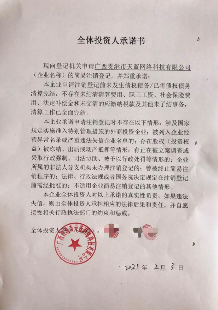 不过游戏新知尚未发现起诉天启的公会,倒是想讨回薪酬的员工不少。2021年1月,何飞等人决定一起申请劳动仲裁。期间(2021年2月)用人单位主体天蓝申请了简易注销,谎称清算工作完成,公告期内被员工提出异议,未能成功。