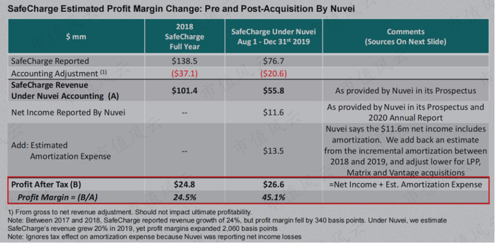 SafeCharge运营成本高企,但是利润率却表现得非常令人怀疑。根据SafeCharge披露的收入和Nuvei披露的净利润,2018财年SafeCharge的利润率为24.5%,2019财年却激增到45.1%。