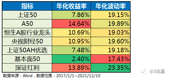 不得不说这个表格所反映出来的信息还是比较直观的,简单总结为一句话就是:A50指数在年化波动率与大部分指数持平的基础上,取得了最高的年化收益率。