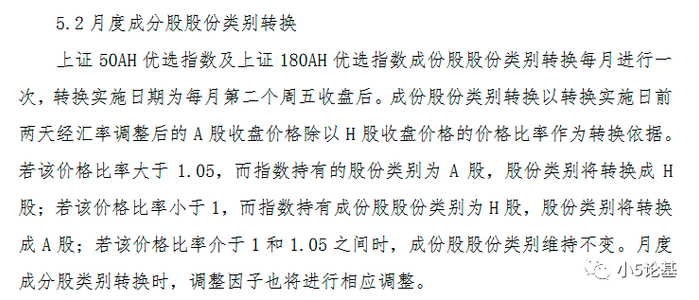 情况1:(经过汇率调整后的)A股价格/H股价格<1.05,相应的A股作为上证50AH优选的成分股。