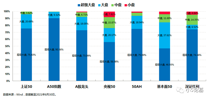 上图为各大50系列指数的市值风格情况图。