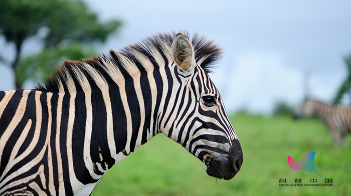 斑马的黑色毛发充满黑色素,但白色毛发不存在黑色素。这是因为长出白色毛发的毛囊“关闭”了黑色素细胞生产黑色素的过程。所以黑色是斑马毛发的默认颜色,而白色是条纹。