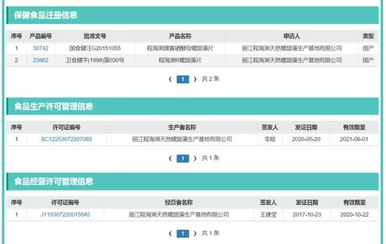 另需提及的是,与康恩贝合作的生产企业有的出现食品生产许可证过期情况。根据法人库特殊食品监管子库信息查询系统,丽江程海湖的食品生产许可证已于2021年6月1日过期。