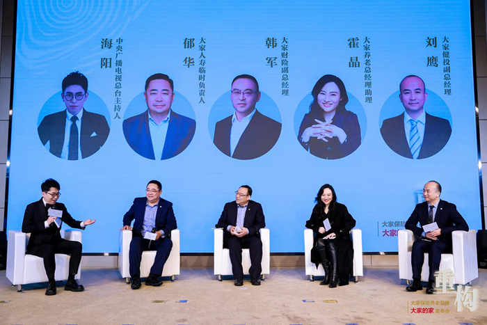 在以“为养老注入生命力”为主题的圆桌论坛环节,大家人寿临时负责人郁华、大家财险副总经理韩军、大家养老总经理助理霍晶、大家健投副总经理刘鹰共同分享了如何通过具体业务支撑“大家的家”,并围绕“家庭”“差异化”“规划”“近”四个关键词阐释了对“大家的家”的理解。