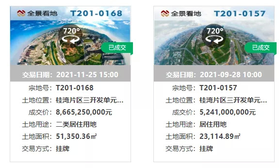 这两地都位于桂湾片区,其中,编号为T201-0157的宗地被天健拍走;T201-0168宗地则被盐田人才安居有限公司和深业南方地产(集团)有限公司联合拍下。