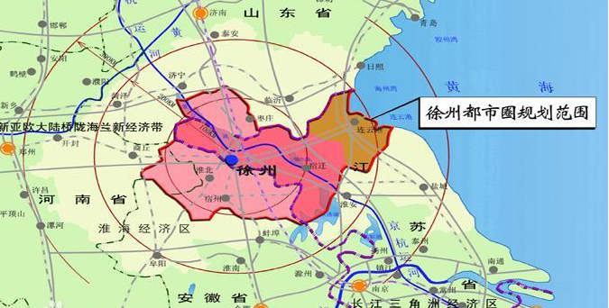 徐州都市圈也当仁不让地被视为淮海经济区的核心和基石,江苏省早在2002年就完成了徐州都市圈的规划,和南京都市圈、苏锡常都市圈并列为省级三大都市圈。