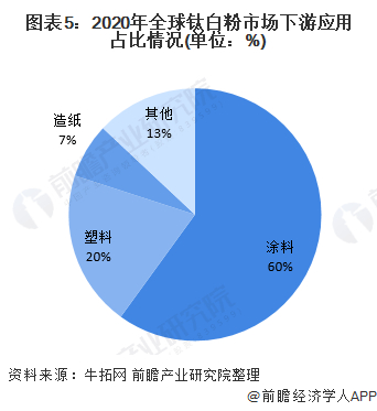 在下游应用方面,全球钛白粉主要下游应用市场为涂料市场,占比约为60%,与中国情况基本相符;其次为塑料行业,占比约为20%;造纸行业占比约为7%,略低于中国市场占比;其他行业约占13%。