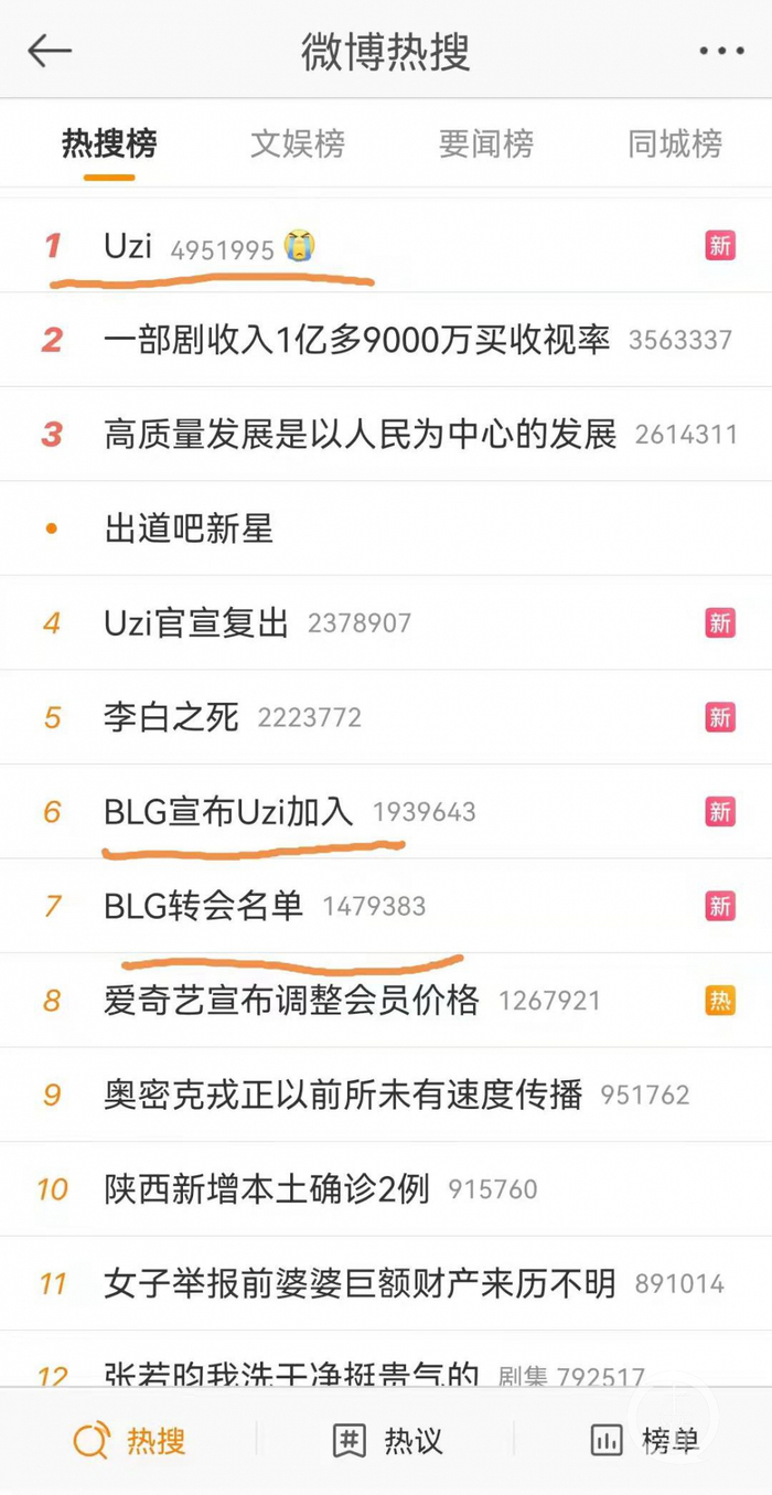 Uzi复出占据了三个热搜