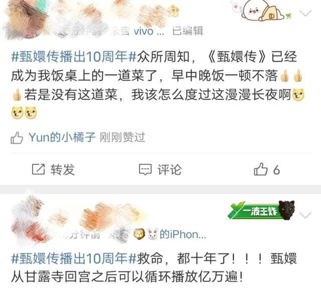 播出十年后,《甄嬛传》热度一直居高不下,早就成为了众多网友的下饭神剧。