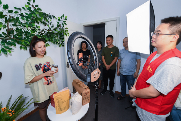 9月29日,在杭州市临安区清凉峰镇新农人创客中心,党支部正在开展直播培训活动。近年来,浙江省杭州市临安区发现、挖掘、培养优秀青年,筛选审核形成“好苗子”储备库,吸纳一批返乡创业青年、来本地投资创业青年、村务工作者、社会组织骨干等积极向党团组织靠拢,鼓励他们成为乡村振兴中的“领头雁”,带动村民增收致富。新华社记者 徐昱 摄