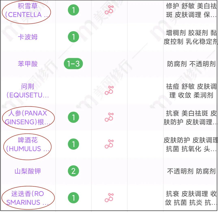 成分里含有多种珍贵植物精粹,比如人参、积雪草、迷迭香等等。