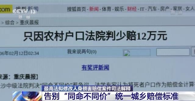 告别城乡“同命不同价”!最高法拟修改人身损害赔偿案件司法解释