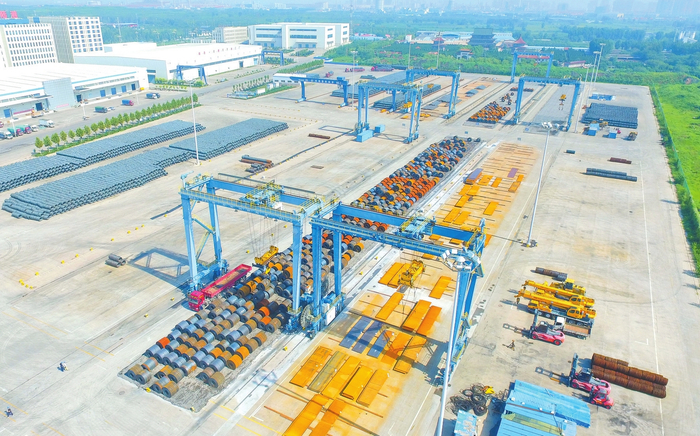 邯郸国际陆港,钢卷正在装车。