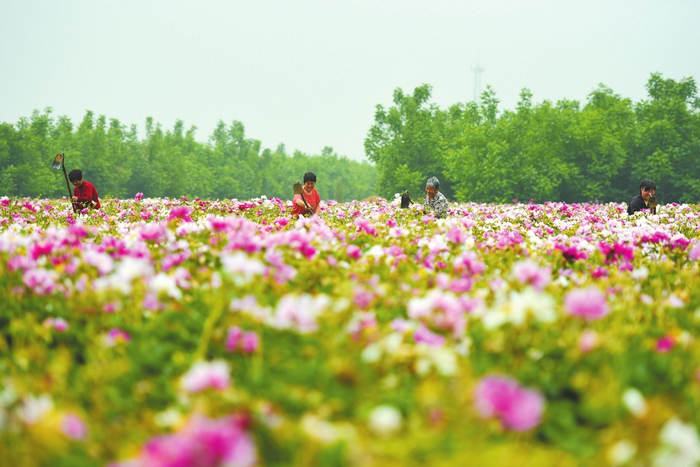 种植基地劳作。农民在代召乡芍药