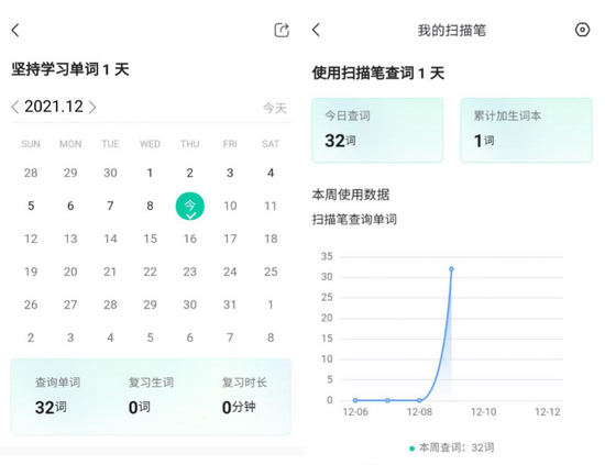 除此以外,新东方在线词典笔T1也上线了丰富的软件功能,全方位、多场景辅助学习者。当用户完成新东方在线学员账号与词典笔的绑定后,即可在APP内实时同步学习记录,收看学习数据报告,轻松查看每日查词数据、掌握词量、学习时长等数据统计,清晰直观地了解学习进度,从而提高学习效率。