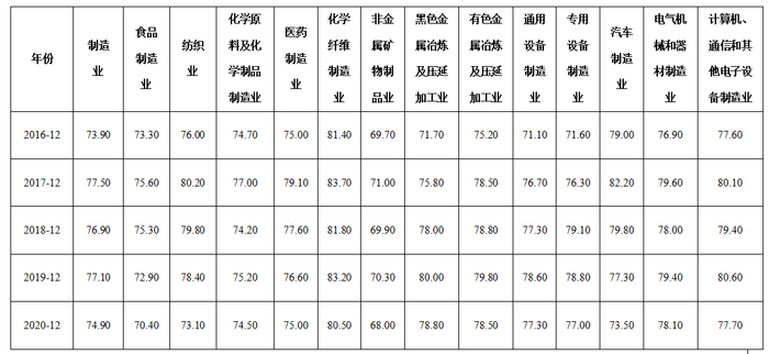 (二)产业内卷直接导致部分行业难以摆脱产能过剩制约。内卷情况下,部分行业由于企业普遍缺乏核心竞争力,难以走出产能过剩的困境,新兴产业在地方政府扎堆投资驱动下也呈现快速产能过剩的情况,这些都导致了中国制造业总体上难以摆脱产能过剩的恶咒。2016年以来,中国制造业整体产能利用率为73.9%,此后年度虽然有所提升,但一直低于80%的水平,呈现出产能利用不足、生产效率不高的局面。从具体行业看,除化学纤维制造业略高于80%外,多数产业大部分年份产能利用率也低于80%(见表1)。近年来,半导体、互联网等新兴产业由于缺乏有效行业管理和引导,盲目上马和无序竞争,不仅对传统行业带来巨大冲击、造成社会资源的巨大浪费,还面临整个产业难以实现良性发展的困境。表1 2016年以来中国制造业产能利用率情况