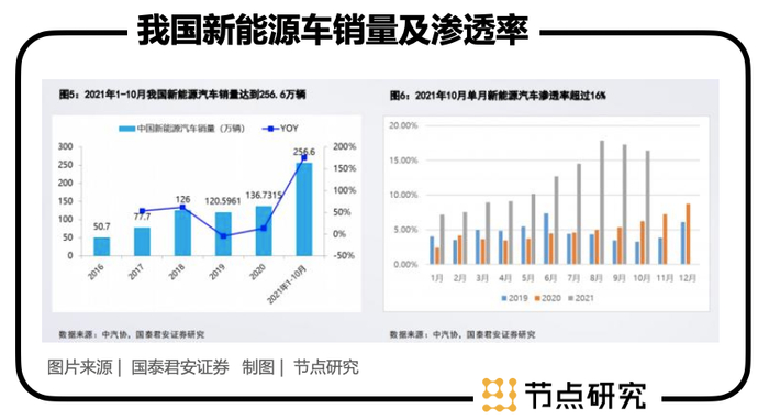 随即步入2021年,迎来新能源汽车销量的爆发性增长,2021年1月-10月我国新能源汽车销量便达到256.6万辆,同比增长高达177%。