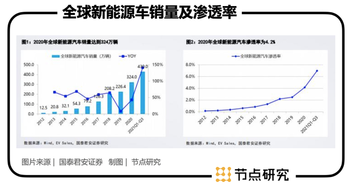 放眼全球,2012年新能源汽车渗透率仅为0.2%,而2020年渗透率达到了4.2%,全球新能源汽车也处在快速发展之中,欧洲的负向约束与补贴政策,激发了新能源汽车在欧洲的爆发。