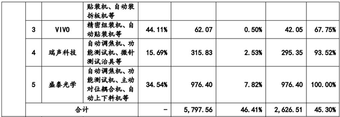 2020年,广浩捷前五大客户中瑞声科技整体毛利率(15.69%)较低,对此广浩捷解释:主要系公司向瑞声科技主要销售增添配套供料模块的功能测试机、自动调焦机等产品,其生产成本较高;光学业务是瑞声科技未来发展的重要战略方向。基于对客户性质、订单规模、后续业务机会等因素综合考量,公司在定价上予以适度优惠,上述因素综合使得公司对瑞声科技的销售毛利率较低。