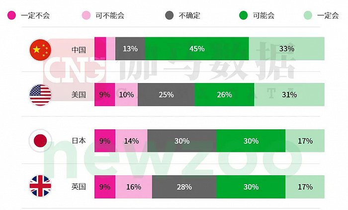 当被问及对与在元宇宙类的游戏世界中闲逛和一般社交的潜在兴趣时,消费者,尤其是在中国和美国的消费者们对这个想法多持开放态度。