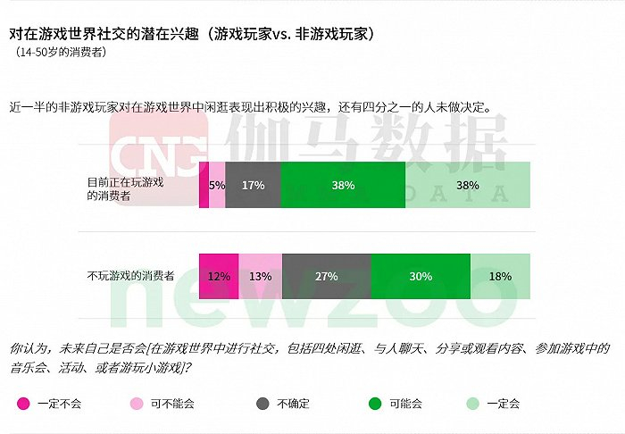 您认为,未来自己是否会[在游戏世界中进行社交,包括四处闲逛、与人聊天、分享或观看内容、参加游戏中的音乐会、活动、或者游玩小游戏]?