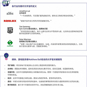 Newzoo和伽马数据(微信号:游戏产业报告)的研究显示:尽管元宇宙的框架已经建立,但权威定义尚未形成。