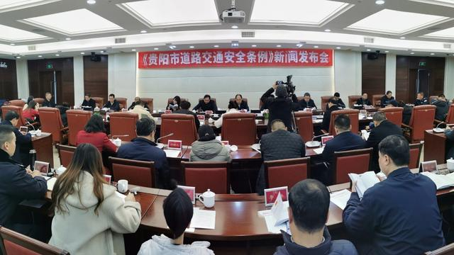 会上,市人大常委会秘书长田胜松宣读了《贵阳市道路交通安全管理办法》公告,市人大法制委主任委员、法工委主任陈寿宇就发布《办法》进行了解读,市人大监察和司法委主任委员蒋景华就《办法》立法背景发言,市人民政府副市长、市公安局局长陈刚作讲话。来自该市市司法局、公安交通管理局等相关单位参会并回答了来自媒体的提问。