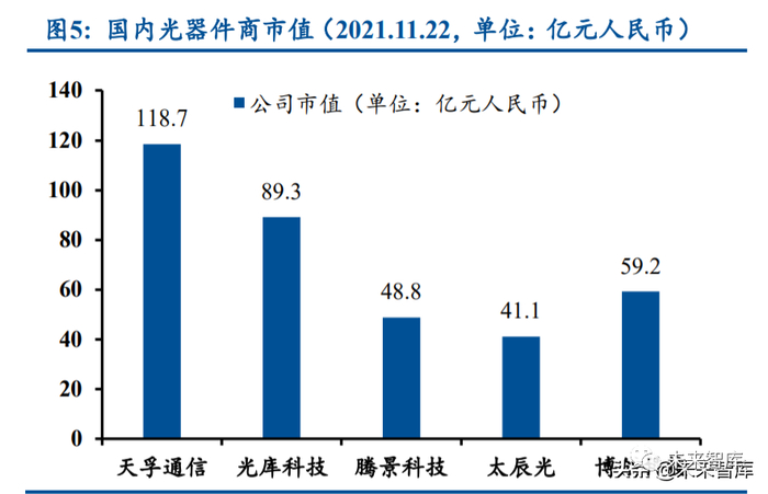 整体而言,在光通信产业链持续向国内转移的大背景下,国内光通信企业发展势头迅猛, 技术角度在部分高端领域持续取得突破,未来有望进一步替代国外厂商的份额,享受光通信 领域的国产化替代机遇。