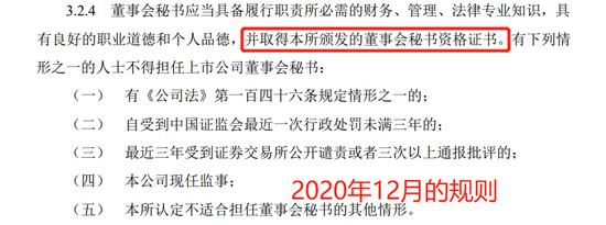 的确,对比2020年12月的规则和2021年12月的征求意见稿,新的征求意见稿中删掉了要求取得董秘资格证书的文字。
