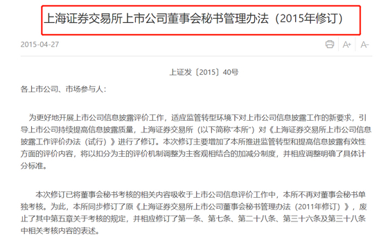 同样,上交所也有相关单独规定,那就是2015年4月发布的《上交所上市公司董事会秘书管理办法》,其中也规定了,担任上交所上市公司董秘要取得上交所认可的董事会秘书资格证书。