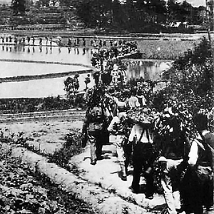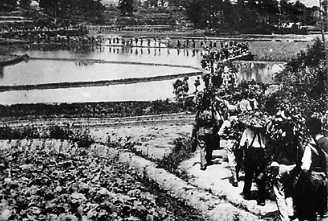 木刻印刷的大江币,票面具有现代版画风格,在巴掌大小的空间中,展现了无穷无尽的艺术想象,不仅蕴藏了深厚丰富的思想内涵,而且展示了现实广阔空间,把抗日根据地军民生产、生活、战斗诸多元素浓缩、呈现出来。既有表现根据地军民努力生产的春耕图、秋收图及建造水闸、修建长江堤坝等图景,也有描绘根据地军民艰苦战斗的站岗图、埋雷图和升旗图、欢庆胜利图,还有表现军民合作的工农兵学商图案、根据地的山村、城镇、日出图案等。
