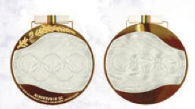 1992年阿尔贝维尔冬奥会奖牌,用水晶玻璃制造,分别镶金、银、铜,是奥运会奖牌设计和技术上的一次革命。