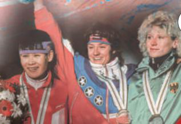 1992年阿尔贝维尔冬奥会,女子速度滑冰1000米的颁奖仪式,中国选手叶乔波(左)获得亚军,中国实现了冬奥会奖牌“零的突破”。