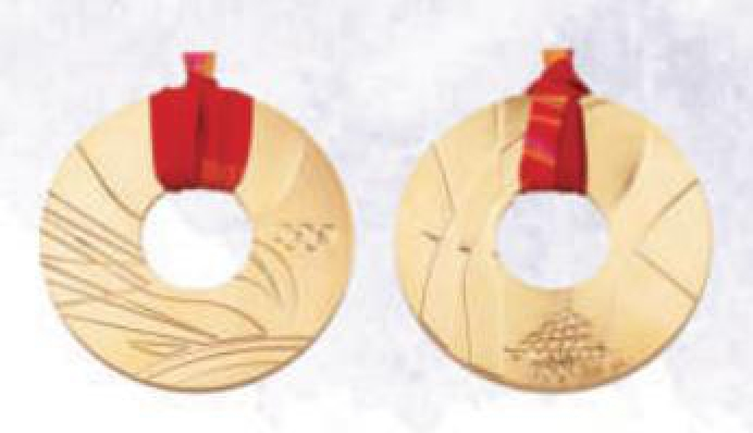 奖牌正面圆环做打凹处理,取意传统弦纹玉璧,保持了与2008年北京夏奥会奖牌“金镶玉”玉璧形制的一致性,体现出双奥城市的文化传承。装饰纹样中,冰雪纹表现了冬奥会的特征,祥云纹传达了吉祥的寓意。