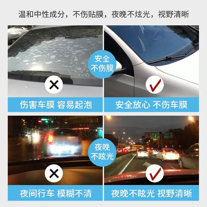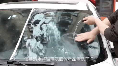 除油膜剂,用自带的海绵头涂满车窗,再用水冲掉就能把油膜洗的干干净净,洗完以后自带“防油膜”,整整一个月没有炫光干扰。