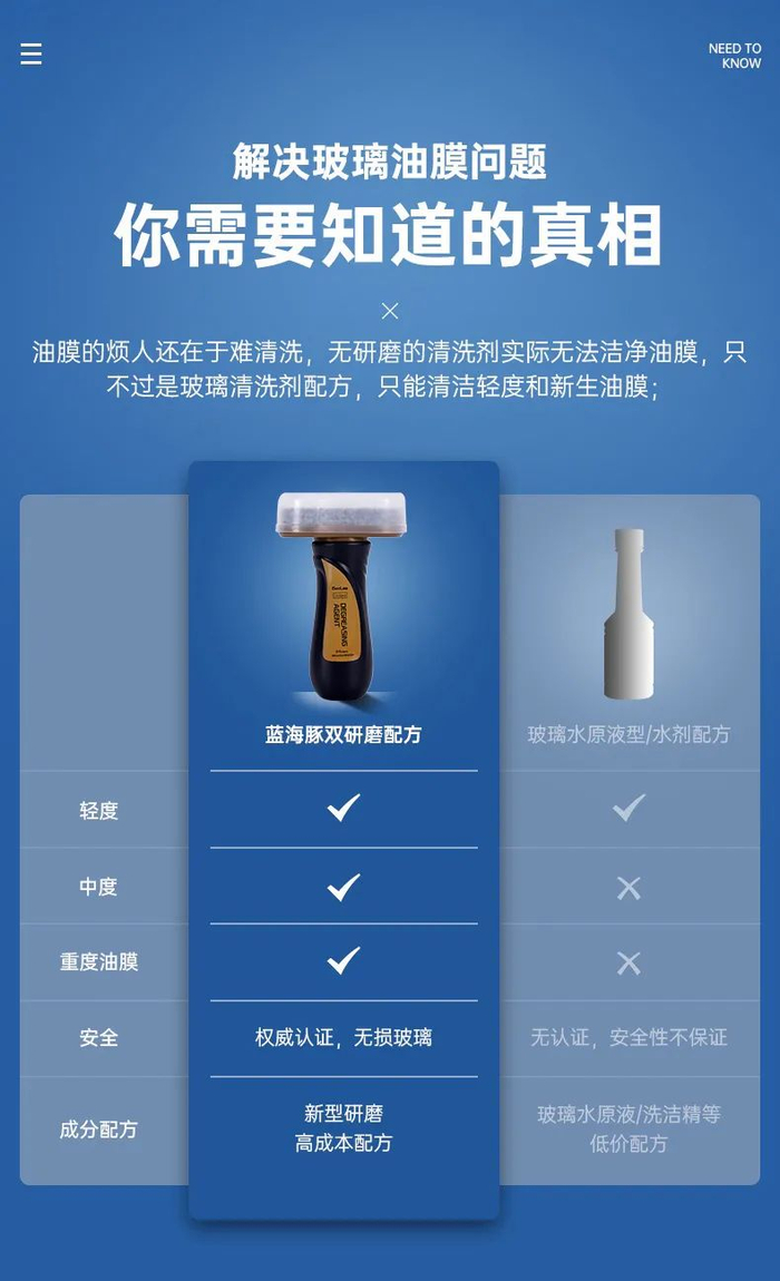 喷雾形式的油膜去除剂看似节省时间,但是只能清洁表面污垢,无法做到真正彻底、360度无死角的清洁。