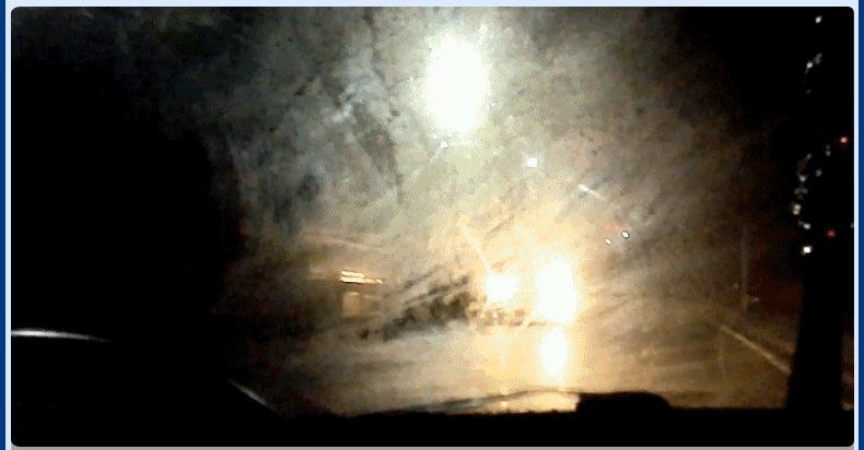晚上形成强烈炫光,对面灯光一照,眼睛都要瞎掉,什么路、行人、驶来车辆都看不清了。
