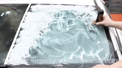 拧开产品盖子,均匀地涂在干净的车窗上。(注意:车窗污渍要提前擦干净,使用效果更佳。)