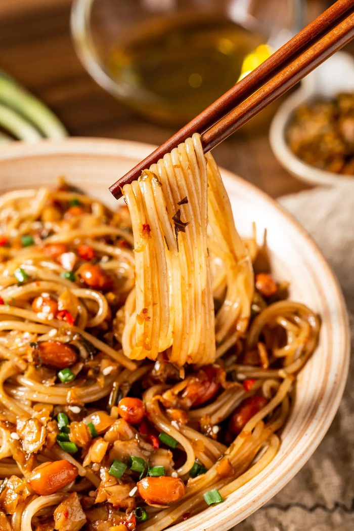 街边店里,酸辣粉的好滋味也让人无法拒绝。热腾腾的红薯粉加足了香菜、花生、葱蒜,醋与辣椒油齐齐倒入,麻辣鲜香、酸爽解腻。