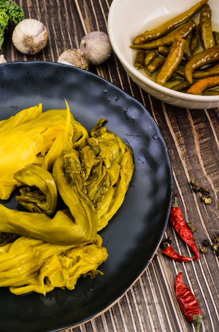 泡的时间长的那些则叫“深水菜”,姜、蒜、辣椒等都在此列。在盐与白酒的作用下,泡菜们拥有了极其浓郁的风味,作为配料加入菜肴,总能让人感受到扑面而来的四川气息。酸菜鱼,泡椒鸡杂,都是桌上常客。