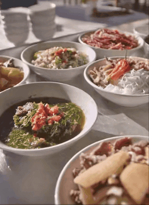 撒撇制作时十分考究,用料要新鲜,佐料要样样齐全,切牛肚丝、牛肉片时,更讲究刀功的细致。柠檬、香菜、小米辣调成一大碗,夹起晶莹细长的米线和牛肉、牛肚,在撒撇中一蘸,酸辣滋味叫人格外享受。