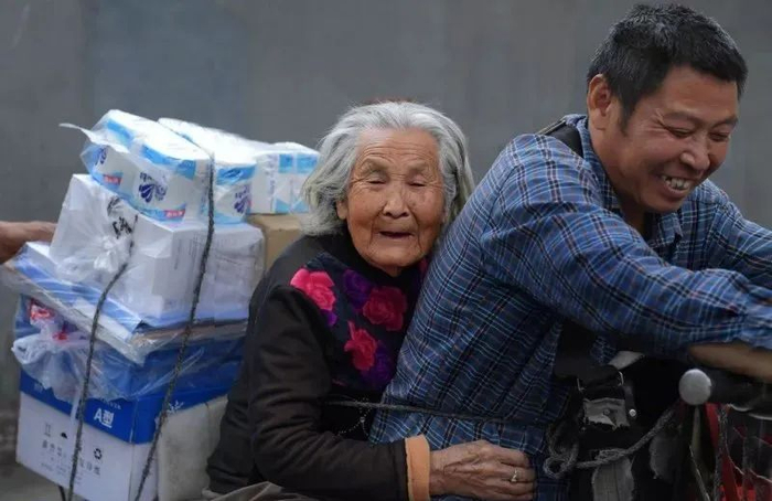 母亲92岁时患上了阿尔茨海默症,俗称老年痴呆。为了照看母亲,他每天驮着母亲送货,24小时形影不离。