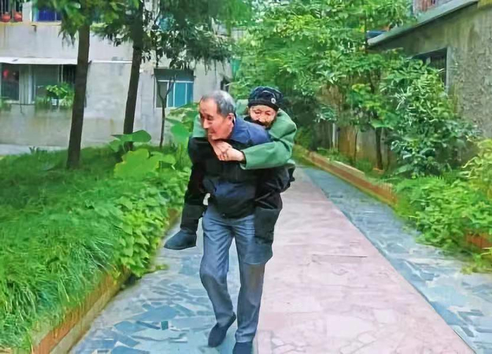 已到花甲之年的吴国元,头发早已斑白,但他仍每天背着92岁的母亲下楼散步。
