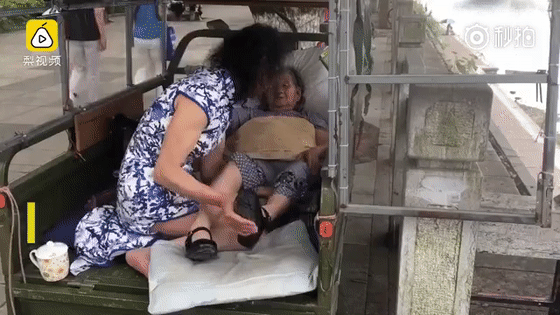 四川峨眉山75岁老人蔡冬凤,年幼时生了一场大病,导致她的双手双脚全部截肢。