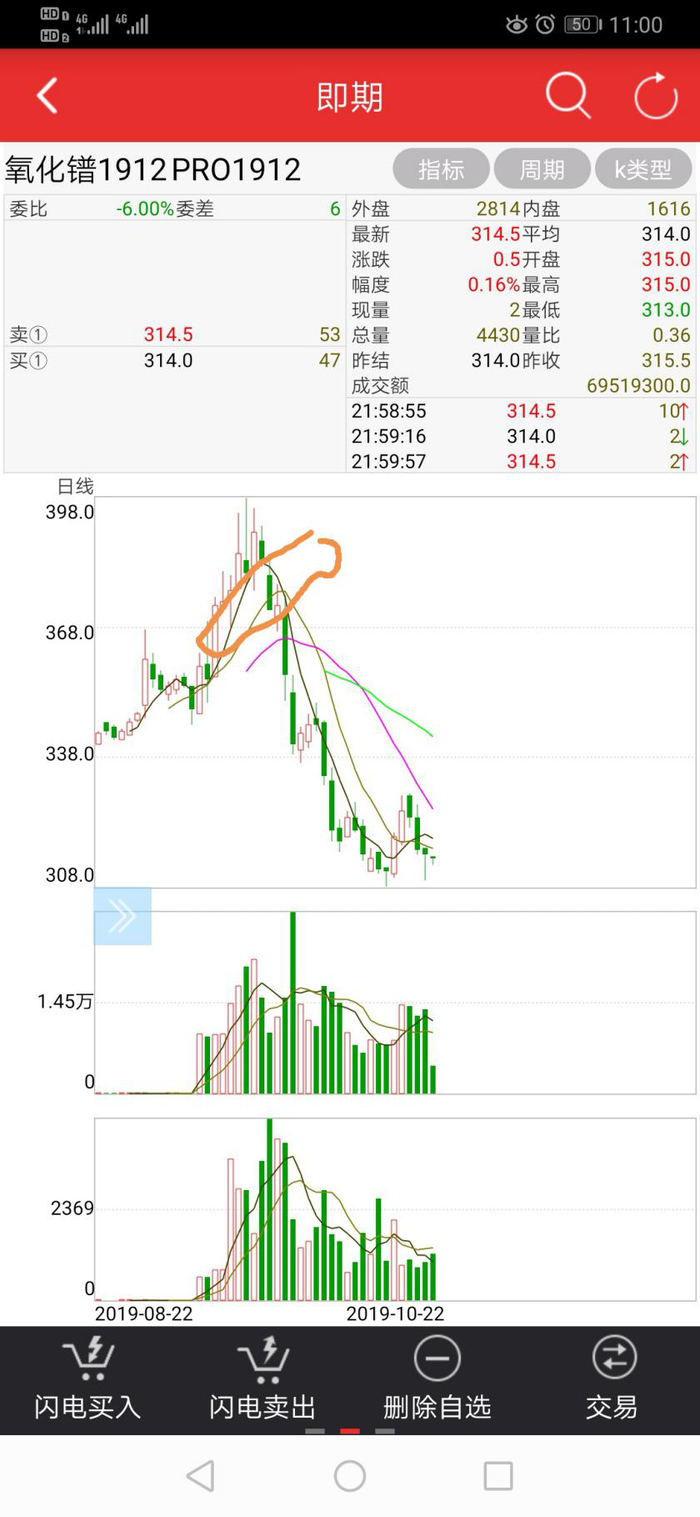 李君称在最高点382.5元做多入场,进场后大跌几十个点“老师”仍让继续多单进场死扛。